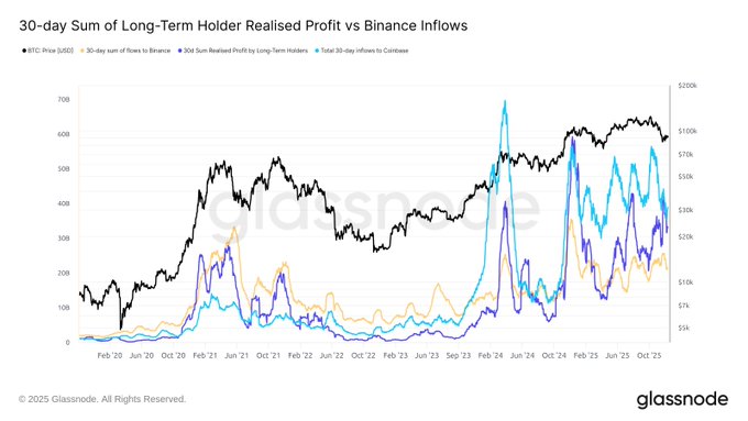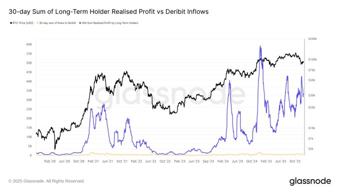 The purple line is 30-day sum of onchain Realised Profit by Long-Term Holders (just the profit, not the total coin volume).