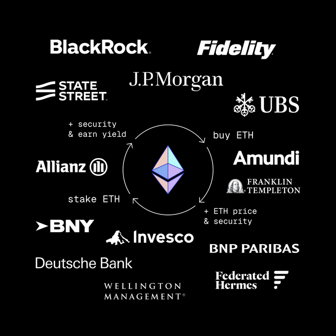 institutions are tokenizing on Ethereum next they’ll have to buy ETH & stake to increase its economic security. they’ll earn yield doing it. bullish for ETH