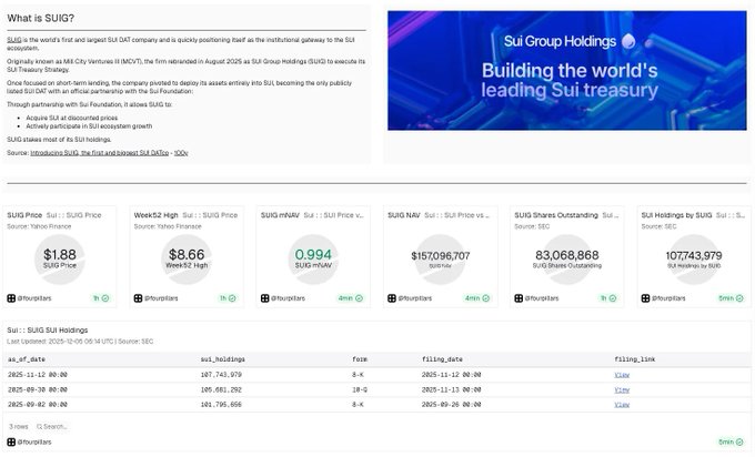 Curious how Sui DAT company is doing? Here is @officialSUIG dashboard made by @FourPillarsFP