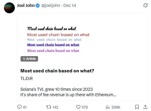 @joeljohn's article, "Most used chain based on what?", also aptly points out Solana's dominant position in multiple dimensions recently.