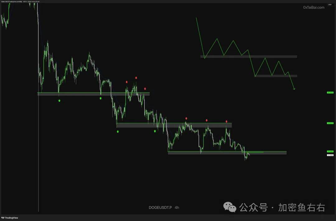 The Dogecoin 4-hour chart is a textbook example of "horizontal support and resistance." Support and resistance levels are not strictly a single line (a price with zeros and integers), but rather a price range (allowing for dynamic room for error, which is caused by failed attempts by bulls and bears to break through key levels).