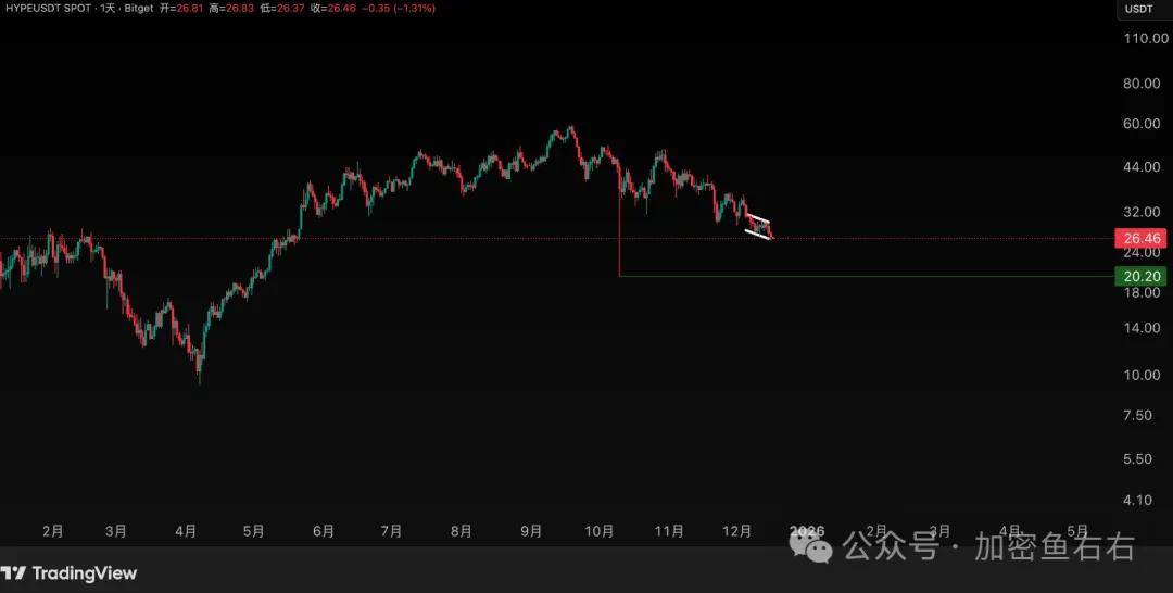 HYPE is currently in a state of continuous fluctuation and decline, and has now fallen to 26. There has been no acceleration or surge in volume. Considering the upcoming launch of Lighter and the full release of its own positive factors, if it accelerates down to around 20 (the price at which it was liquidated on October 11), it would be a possible entry point.