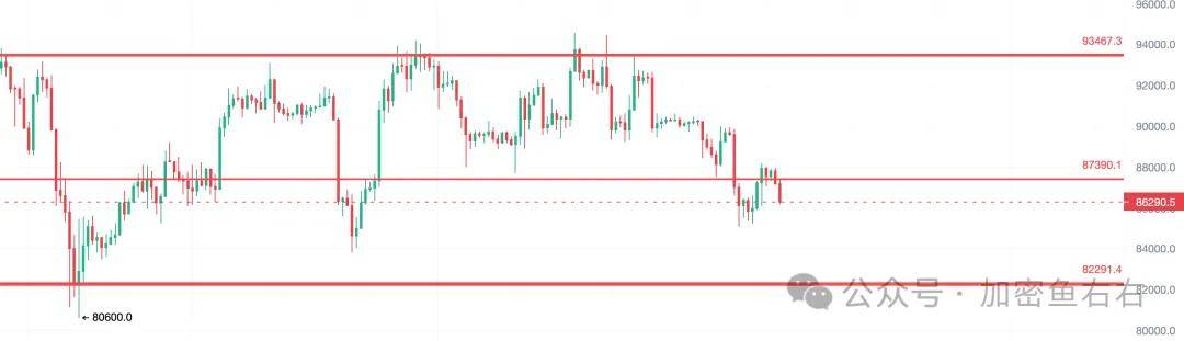 BTC closed with a long lower shadow bullish green candle this morning. The daily chart has been oscillating downwards along the MA30, which has now dropped to around 90,000. This means that if the short-term BTC rebound cannot break through and hold above 90,000, it will continue to retrace to the previous low of 85,000, or even break below it and continue to fall. Therefore, do not chase the price near 90,000 to avoid being trapped.