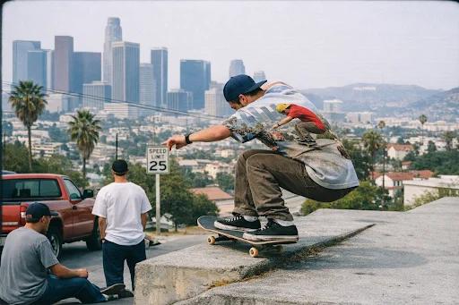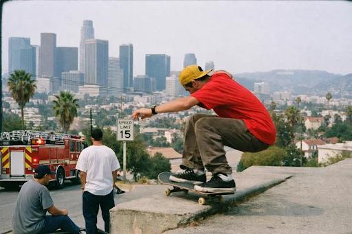 Taking skateboarding as another example, let ChatGPT generate a skateboarding scene of Los Angeles, in the style of late 1990s documentary street photography.