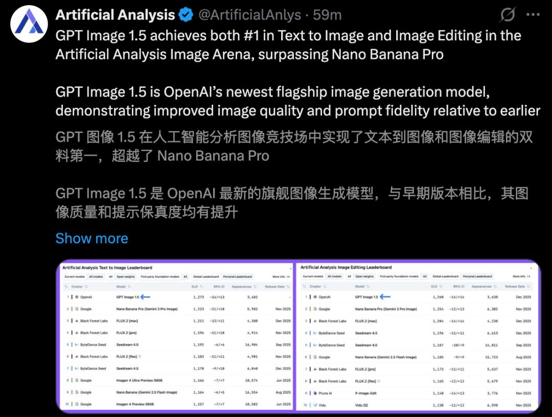 OpenAI unleashed its trump card late at night: the brand-new GPT Image 1.5, which topped two charts, decisively outperforming Google Nano Banana Pro. However, online testing revealed a barrage of criticism.