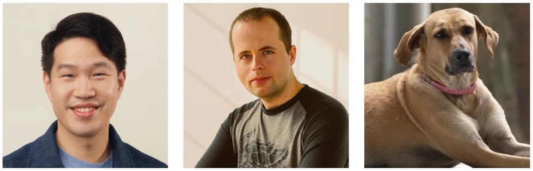 Prompt: Now remove the two men, leaving only the dog, and then put it into an OpenAI live stream, something that looks similar to the attached image.