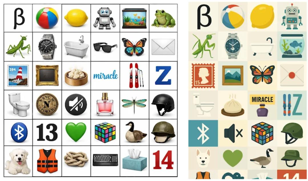 Let's jump straight to hellish difficulty—a 6x6 grid with 36 elements, using GPT Image 1.5 with perfect smoothness and accuracy, not a single element missing.