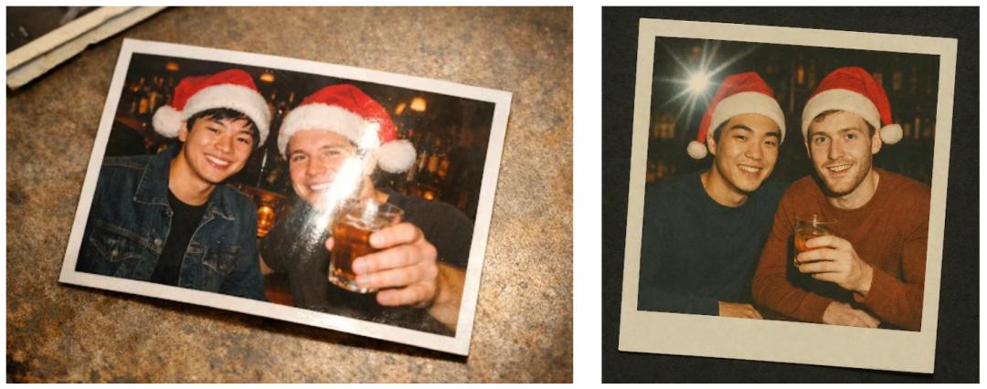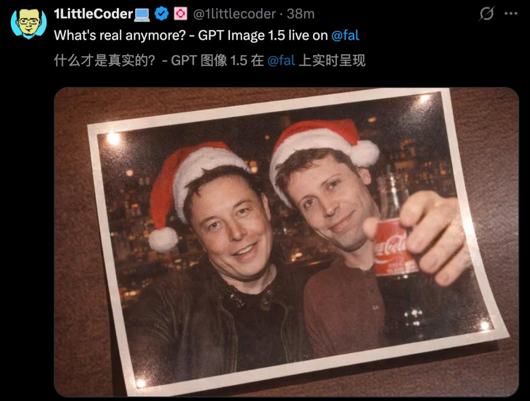 However, some netizens commented that the "Musk and Ultraman Christmas photo" generated by GPT Image 1.5 was so realistic that there was not a single flaw in it.