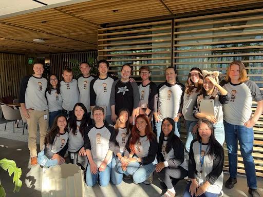 Prompt: Could you put them all in T-shirts with "OpenAI" printed on them, and make everyone smile?