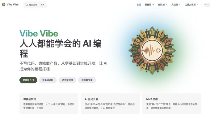 #Datawhale's open-source and free Vibe Coding learning site contains detailed, step-by-step tutorials on Vibe Coding. It's completely beginner-friendly, suitable for anyone wanting to learn Vibe Coding, anyone wanting to use AI to improve their work efficiency, anyone with absolutely no programming experience, and even experienced programmers.