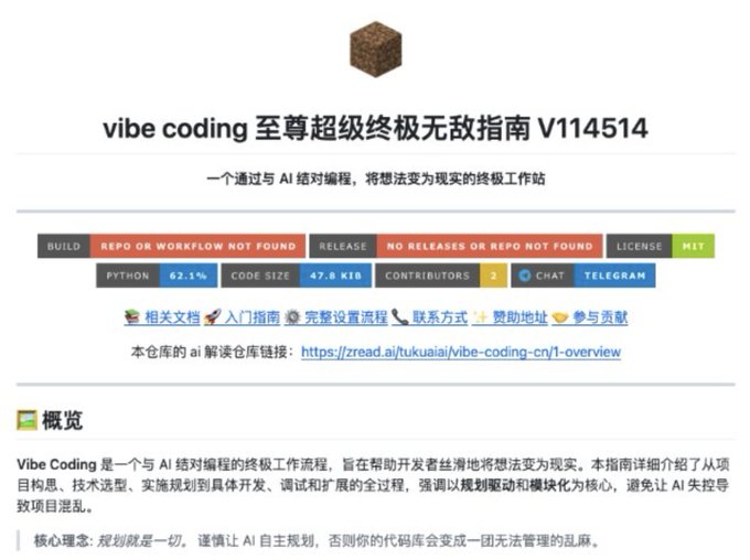 @BiteyeCN has compiled a resource list for Super Individuals: Getting Started with Vibe Coding. The learning path is much clearer.