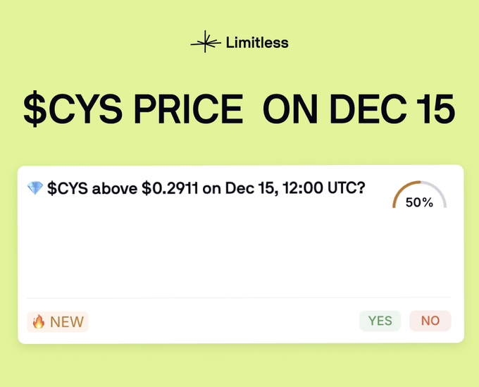 You loved our last $CYS markets. So we added more. Predict $CYS price here → https://limitless.is/cys_dec15