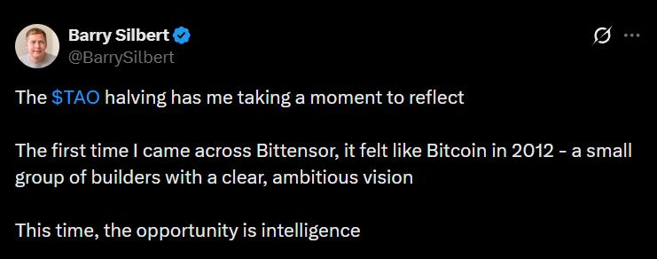 Barry Silbert, who started crypto investing in 2012, is on board the TAO train. Source: XBittensor does have some Bitcoin-like characteristics. There are only 21 million units of TAO, clearly a nod to BTC. Bittensor also has halvings, which in December reduced its rewards from 7,200 TAO to 3,600 per day.