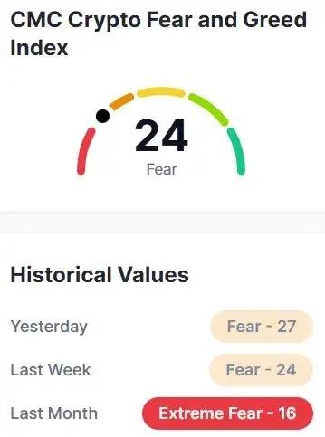 The crypto market has been walking a tightrope over the past 24 hours. Prices have risen slightly, but confidence has clearly increased. Bitcoin and Ethereum have attempted a slow climb, but traders' hands have remained firmly on the "sell" button as fear has quietly taken over . The Cryptocurrency Fear & Greed Index has plummeted to 24 , not out of panic, but as a deliberate show of support. Historical experience suggests this often signals the beginning of a major market move.