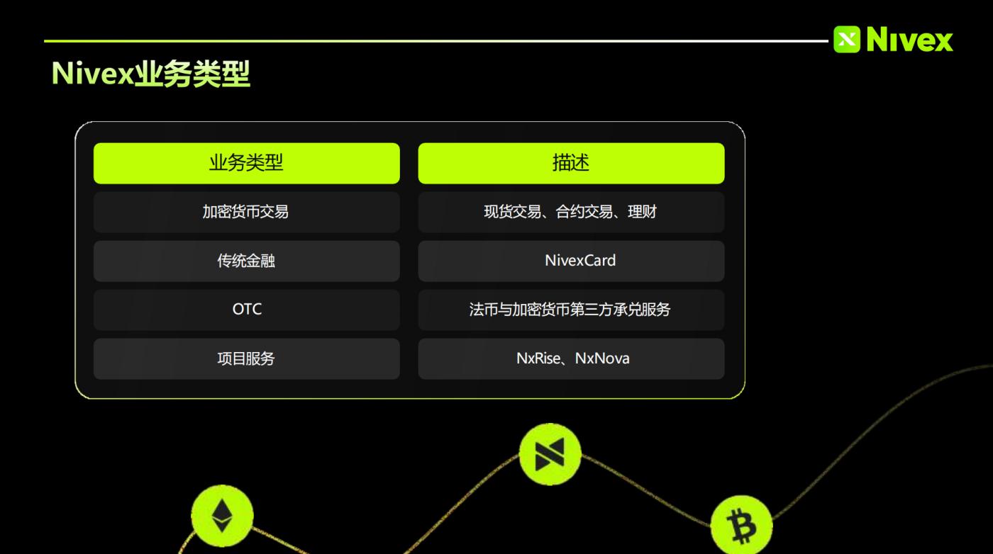 The launch of stock trading is not an isolated feature update, but a natural extension of Nivex's long-term development path. From a positioning perspective, since its inception, Nivex has not limited itself to a single cryptocurrency exchange, but has continuously built its product system around AI-driven, multi-asset trading, and a global compliance strategy. Currently, the platform covers: