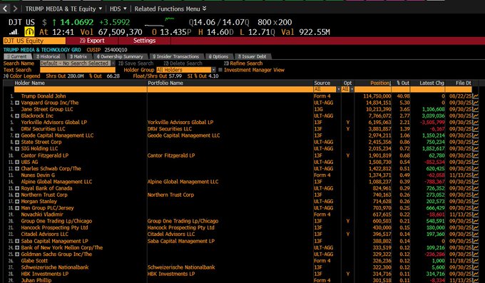 Trump owns nearly 115 million shares of $DJT, and that's currently worth about $1.6 billion.