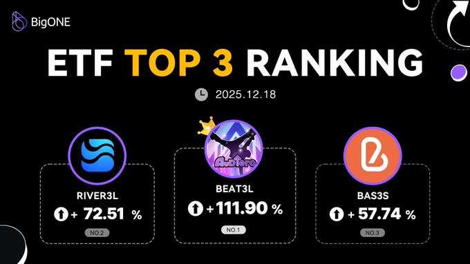 #BigONE Daily Top 3 Leveraged ETF Ranking 🚨 🥇 $BEAT 3L 🥈 $RIVER 3L 🥉 $BAS 3S - As of 18 December 2025 - 📱 Get the #BigONE Mobile App NOW! 👇🏼 http:/big.one/en/downloads