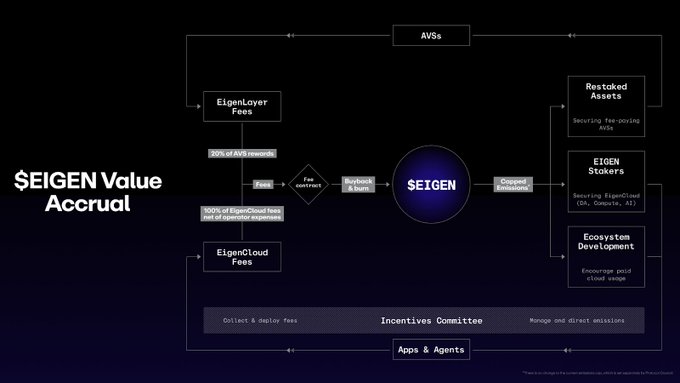 This is the EIGEN value accrual loop. - EigenCloud usage and AVS rewards generate fees - Fees flow into buybacks - Emissions prioritize productive stake - Incentives reinforce real usage & security Details in the thread below 👇
