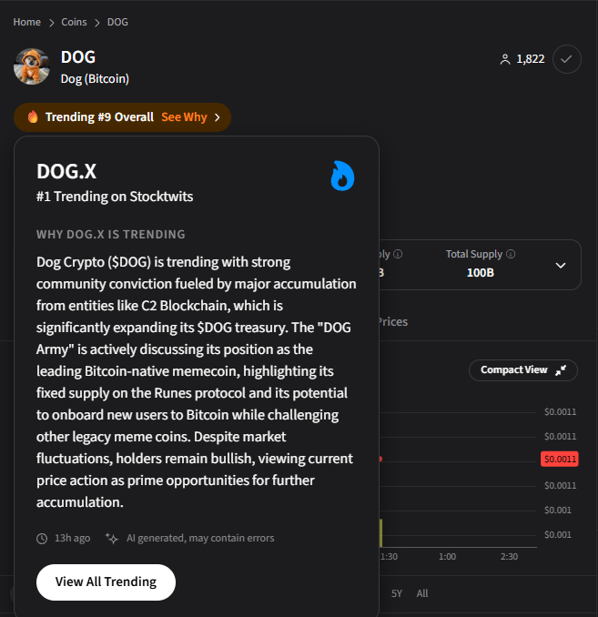 We had an awesome $DOG space today and the $DOG army really showed up! As it was happening, $DOG was trending #1 on Stocktwits!