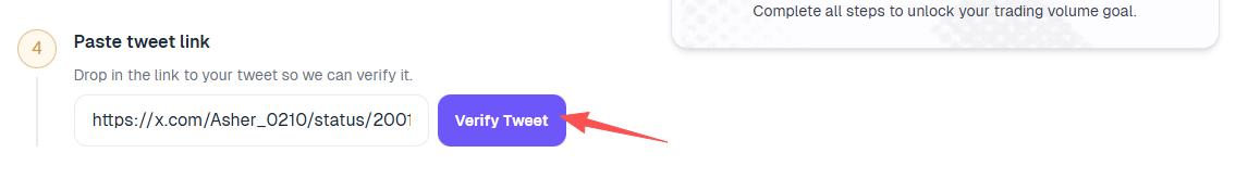 STEP 5. Enter the link to the invitation tweet and click "Verify Tweet" to complete the verification.