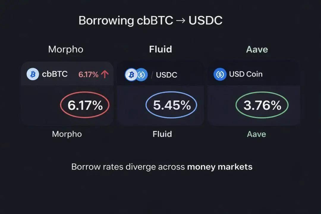 Coinbase's case perfectly illustrates this point: users can borrow USDC using their Bitcoin (cbBTC) as collateral on their platform, and this transaction flow is directed to the Morpho lending market on the Base chain. Although Aave and Fluid platforms on the Base chain offer significantly better interest rates for borrowing stablecoins using cbBTC as collateral, Morpho still dominates the market. The reason is simple: Coinbase users are willing to pay extra for "visible convenience."