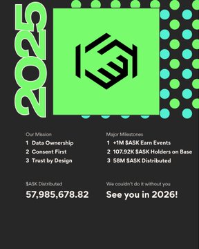 As we begin to wrap up 2025, heres a look back at some of our stats: - 107k+ New $ASK holders on @base - +1M $ASK earn events - 58M $ASK Distributed & so much more. See you in 2026! Big things are underway. ;)