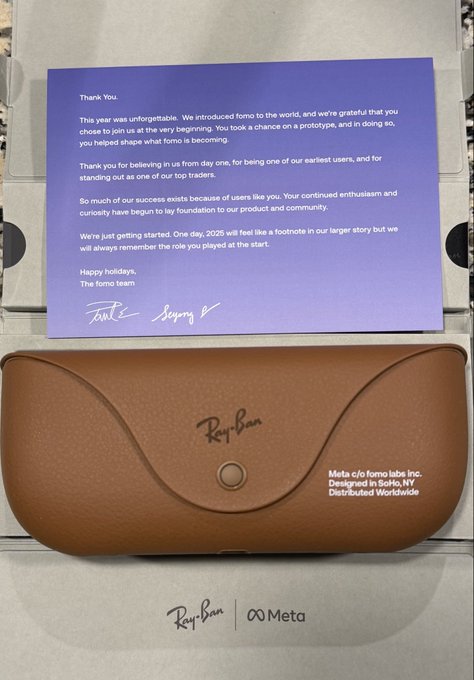 Thank you to @seyong @PaulErlanger and the @tryfomo team for the holiday care package, how’d you know I wanted these for Christmas? Can’t wait to see what 2026 brings for fomo