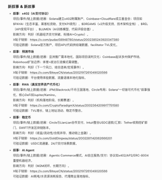 Possible narratives: x402, AI agent, prediction markets, neobank, on-chain finance, stablecoins, RWA, etc.
