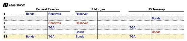 EB: The only difference is that the Federal Reserve exchanged reserves for short-term Treasury bills. The quantitative easing flow of funds stopped there because JPMorgan Chase lacked the incentive to buy more short-term Treasury bills, as the reserve rate was higher than the yield on short-term Treasury bills.