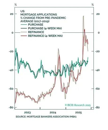 The current level of refinancing is far below the peak of the 2008 real estate bubble.