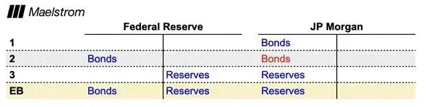 3: The Federal Reserve creates money out of thin air and pays for bonds by injecting reserves into JPMorgan Chase's accounts.