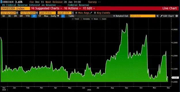 A repurchase agreement, or repo for short, is a money market fund providing overnight cash loans secured by newly issued Treasury bills. In this example, a repo refers to a money market fund providing overnight cash loans using newly issued Treasury bills as collateral. Under normal market conditions, the repo yield should be equal to or slightly below the upper limit of the federal funds rate. Currently, the RRP yield is equal to the federal funds rate, which is 3.50%. The current yield on three-month Treasury bills is 3.60%. However, the upper limit of the federal funds rate is 3.75%. If a repo transaction is close to the upper limit of the federal funds rate, the money market fund can obtain a yield nearly 0.25% higher in the repo market than it would in the RRP (3.75% minus the RRP yield of 3.50%).