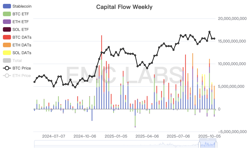 In terms of capital inflows, the scale declined again this week on top of last week's decrease, with the BTC Spot ETF experiencing an outflow of nearly $1.2 billion. The withdrawal of short-term funds from ETF channels due to the US-China trade war is another major reason for the rapid and sustained decline in BTC prices, in addition to long-term selling.