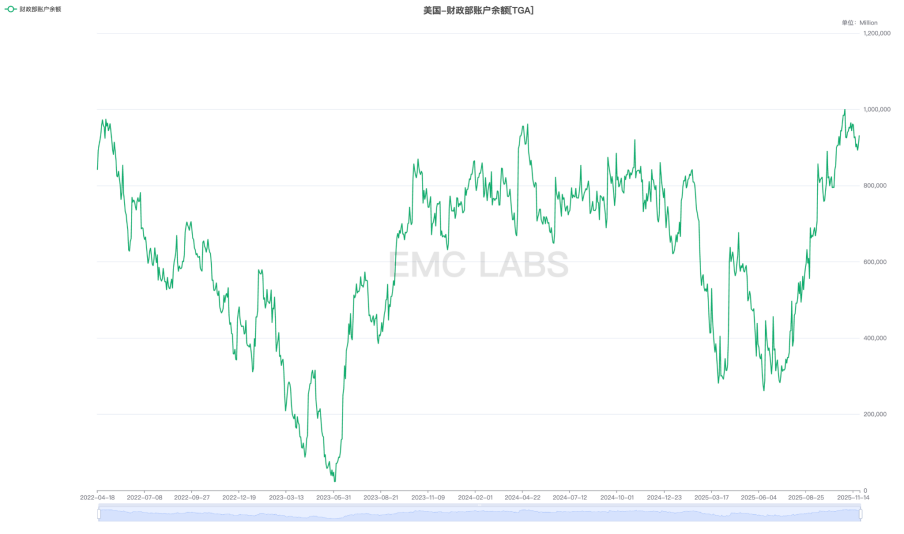 As of November 12, the US government shutdown had lasted 43 days, setting a new record. During the shutdown, fiscal spending was significantly reduced, but revenues such as taxes and tariffs continued to flow in, creating a "one-way inflow, no-outflow" cash flow accumulation that directly increased the Treasury's TGA account balance at the Federal Reserve, resulting in a strong "drain" of liquidity into the market.