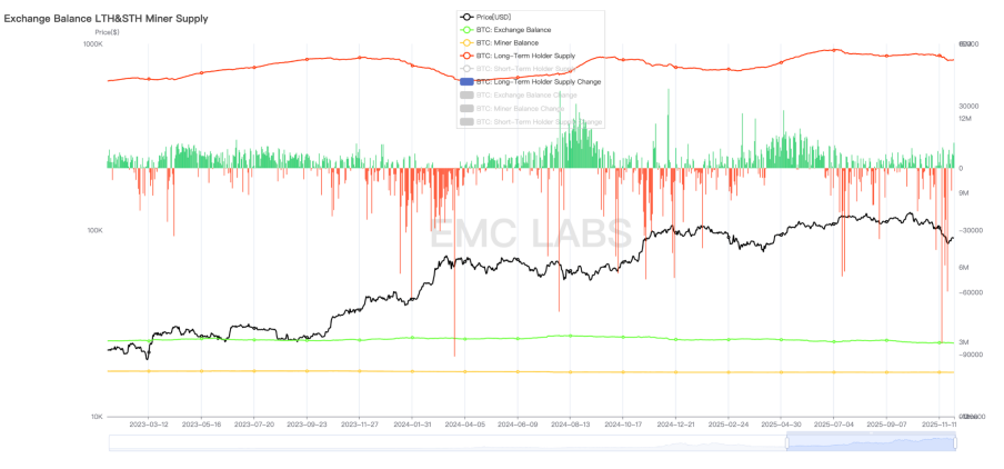 Secondly, the cyclical selling by long-term holders is also an important reason. Since the beginning of this period, long-term BTC holders have launched three large-scale sell-offs: the first wave was from January to March 2024, the second wave was from October 2024 to January 2025, and the third wave is the current deep correction in BTC prices from July to November 2027.