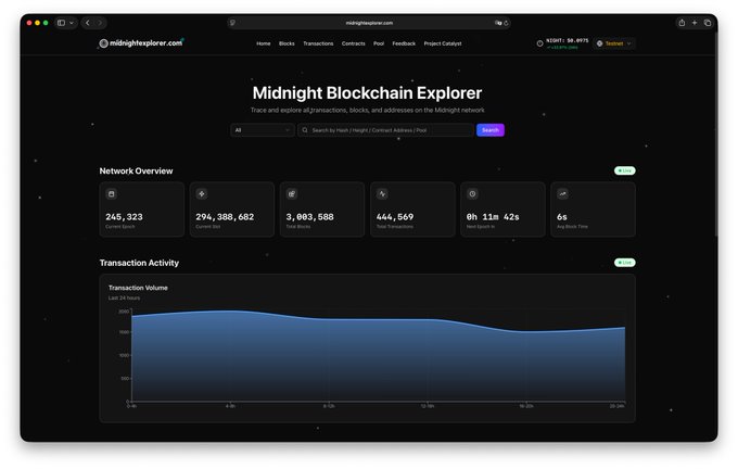 🔥JUST IN: MIDNIGHT TESTNET JUST HIT A MASSIVE MILESTONE – OVER 3 MILLION BLOCKS PRODUCED! According to statistics from http:/midnightexplorer.com, Midnight Network (@MidnightNtwrk) has closed a total of 3,003,588 blocks – officially surpassing the 3 MILLION BLOCK mark on the test network!🔥 And nearly half a million transactions have been completed on the testnet. 24h trading volume remains consistently high – builders and testers are working non-stop. 🚀 This is no longer just a test network – a complete security ecosystem is being built at breakneck speed!🚨 The mainnet will launch in Q1 2026 - will this cause a surge in activity throughout the community? @IOHK_Charles @midnightfdn @MidnightIntern_