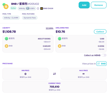 Many people probably don't know that the @beedog_bsc community has a farm game that produces "honey." Honey is used for ranking and participating in community competitions to win prizes. $Beedog I also have my own DeFi farm, using the @PancakeSwap v4 dynamic yield pool. It offers an annualized return of 123% and also earns $HoneybeeDog+ $BNB Although the pool isn't large, seeing the daily yield growth is still quite good. And on @BinanceWallet, MemeRank seems to be considering using liquidity pools for scoring, so this is my small contribution! Alpha is progressing.