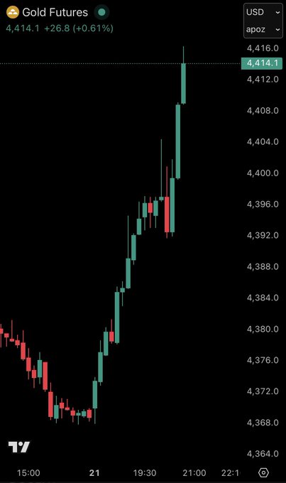 BREAKING: Gold futures surge to a new record high of $4,415/oz, now up +67% this year.