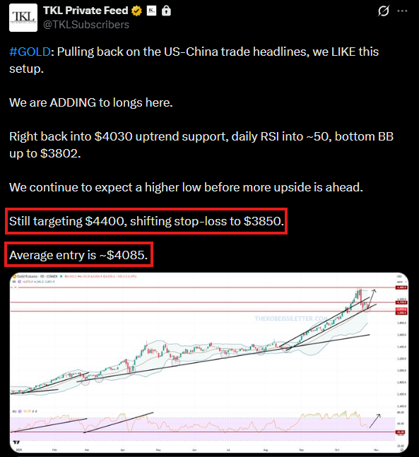 As gold fell into $4,000, we called for a higher low and targeted $4,400.