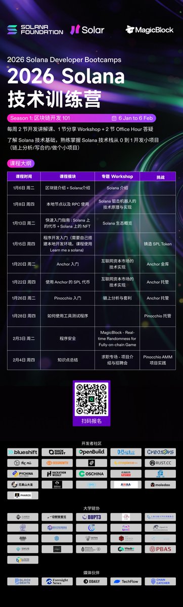 The 2026 Solana Bootcamp is HERE! Co-hosted by @solana & @solana_devs, powered by @magicblock.