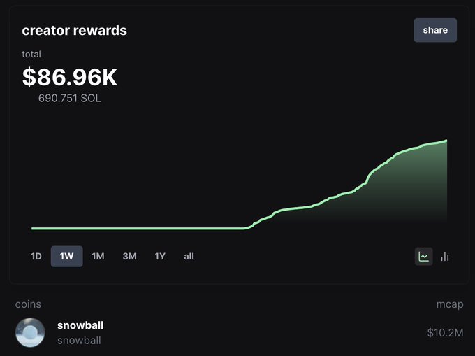 $snowball already bought back $86k all this without selling supply, just from creator rewards pumpfun is very good tek