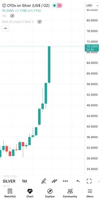 Spot Silver an all time high of $70/once. 👀