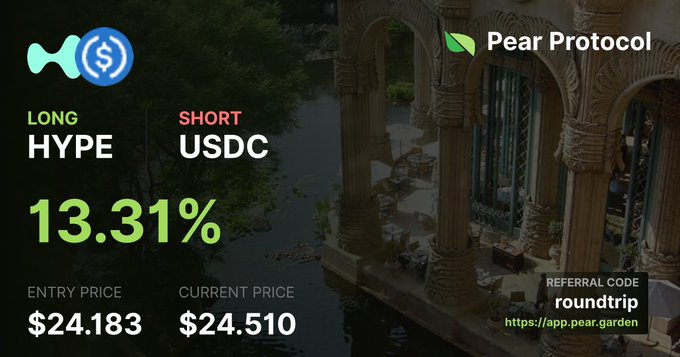 higherliquid taking directional trades on @pear_protocol too, underfarmed and you earn hypear points on volume converting to $hype