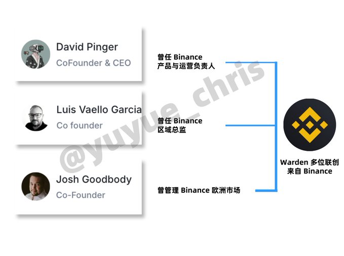 Warden @wardenprotocol 这个项目我看了下团队背景挺好的,最近动作频频,估计 TGE 快了。多位联创都来自 Binance,属于 ex-Binance 系,其他成员还有 Uber、Tendermint、Google、NASA 和 W3C。因此除了在区块链本身很有经验之外,在构建 B 端 C 端平衡生态也有优势,Warden 则加上了一个 A 端(AI