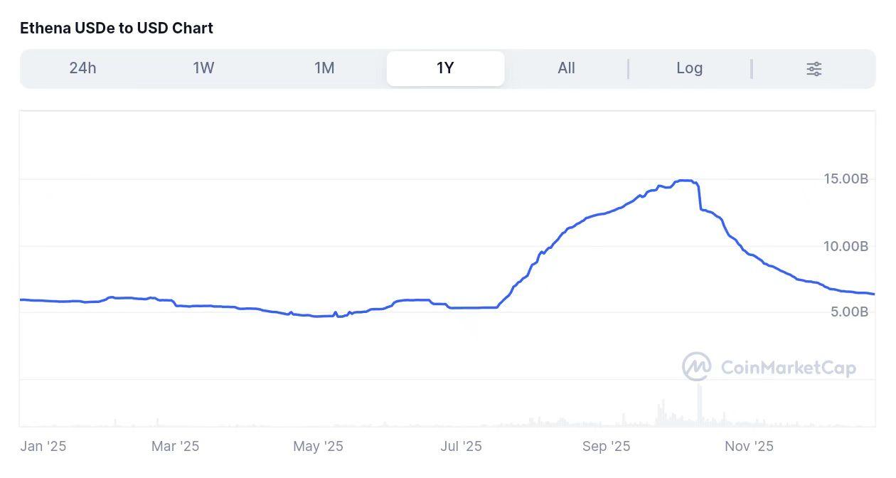 Because USDe once reached system-level scale, its market cap movements carry broader signaling value beyond a single project. As a representative crypto-native stablecoin, changes in its size directly reflect shifting confidence in “non-reserve, synthetic” stablecoin models, which explains why its contraction has drawn sustained market attention.