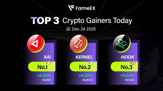 🏆 FameEX Top 3 Gainers Today 1️⃣ $XAI: +9.34% 2️⃣ $KERNEL: +6.33% 3️⃣ $HOOK: +5.64% 👉 Trade now: http:/fameex.com 👈 @XAI_GAMES @kernel_dao @HookedProtocol #XAI #KERNEL #HOOK
