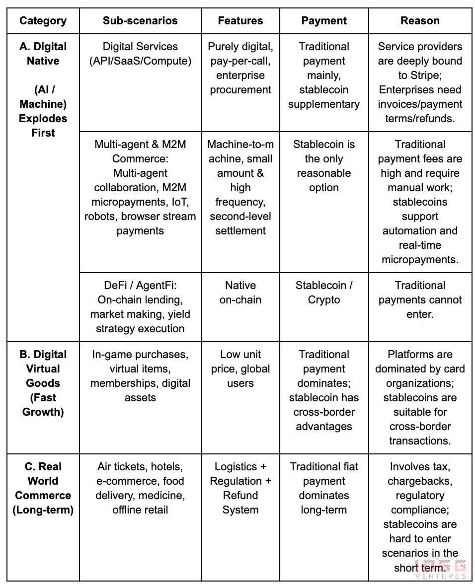 The core obstacle to the scaling of stablecoins in real-world commerce is not just technology, but regulation (KYC/AML, tax, consumer protection), merchant accounting (stablecoins are non-legal tender), and the lack of dispute resolution mechanisms caused by irreversible payments. Due to these structural limitations, it is difficult for stablecoins to enter high-regulation industries such as healthcare, aviation, e-commerce, government, and utilities in the short term. Their implementation will mainly focus on digital content, cross-border payments, Web3 native services, and machine economy (M2M/IoT/Agent) scenarios where regulatory pressure is lower or are native on-chain — this is precisely the opportunity window for Web3-native Agentic Commerce to achieve scale breakthroughs first.