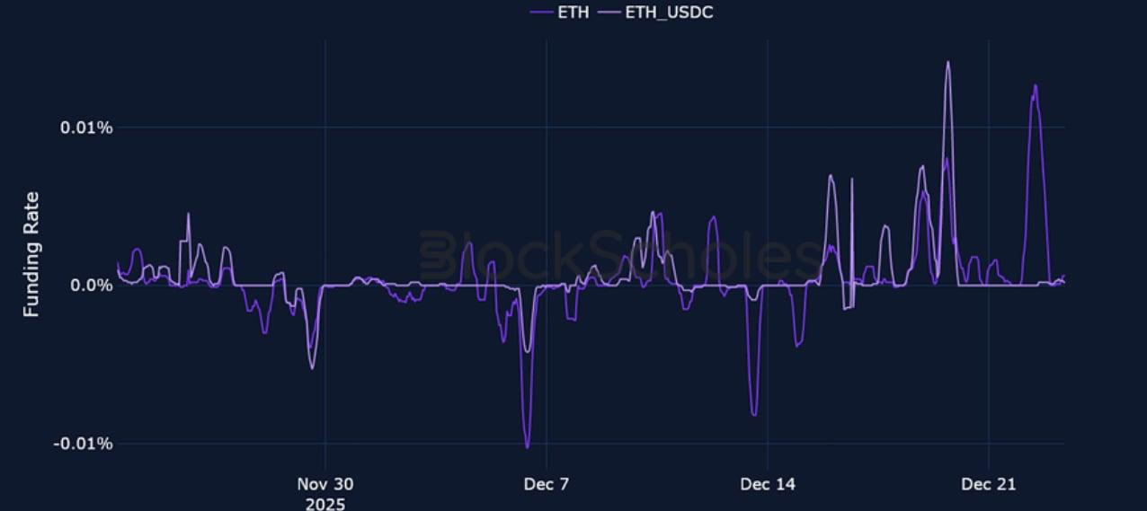 ETH FUNDING RATE – ETH funding rates shot up to their highest levels since late November on Monday 22 Dec, 2025 as Ether reclaimed $3,000.