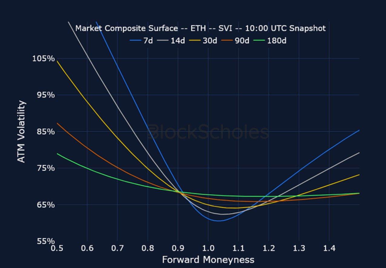 ETH SVI ATM IMPLIED VOLATILITY – After a number of term structure inversions earlier in the month, short-dated ATM vol now trades at 60%.