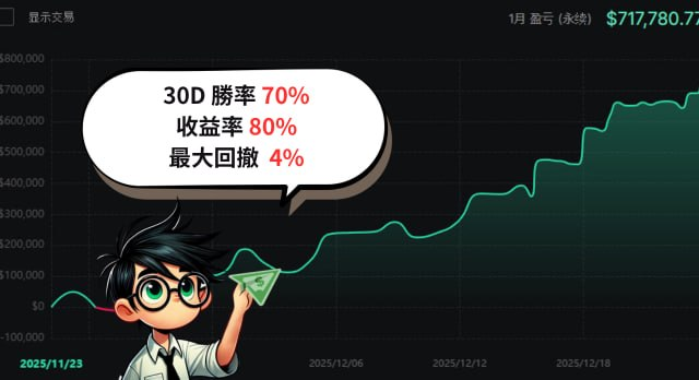 A 70% win rate and a maximum drawdown of only 4% generate an 80% return, demonstrating that his strategy places extreme emphasis on risk control. He likely employs a "take profits when they come, and strictly adhere to stop-loss orders" principle to achieve a stable profit curve.